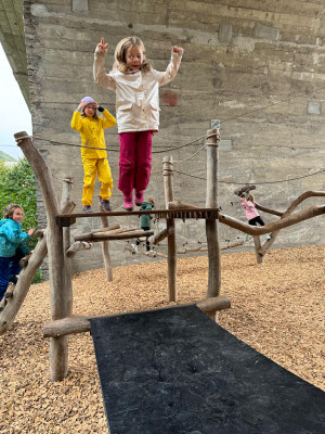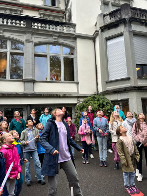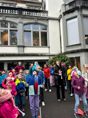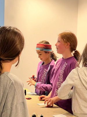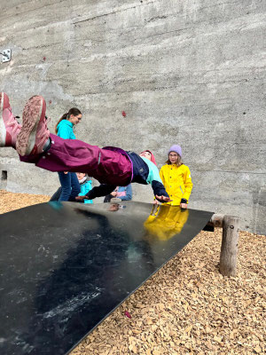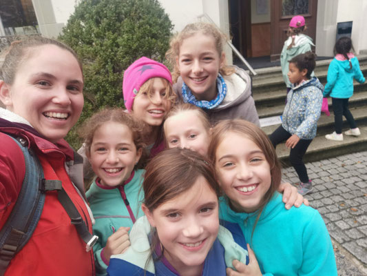 Wie jedes Jahr startete die Mädchenriegenreise am Bahnhof Dielsdorf als grosse Überraschung. Nur die Leiterinnen wussten, wohin es gehen würde. Dies führte zu wilden Spekulationen: Von Technorama über Kino bis hin zu einer Safari-Reise in Afrika war alles dabei. Obwohl der Wetterbericht tendenziell eher in Richtung Dauerregen zeigte, entschieden wir uns für das Schönwetterprogramm. Folglich erschienen alle fünfzig Mädchen dick eingepackt in Regenkleidung am Bahnhof. Dies erschwerte den Überblick erheblich, da wir leider nur ein gemeinsames Mädchenriegen-Shirt besitzen und nicht mit einer Vereinsregenjacke ausgestattet sind. Nach dem wir den Mädchen eingeschärft hatten, zu welcher Gruppe sie gehören, ging es auch schon los auf den Zug und dann weiter mit dem Bus in Richtung Baden. Dort angekommen marschierten wir durch die Altstadt mitten durch den Wochenmarkt und schlängelten uns an vielen Besuchern vorbei, immer darauf bedacht, niemanden zu verlieren. Das Ziel war der grosse Spielplatz unter der Brücke. Endlich angekommen platzierten wir unsere Rucksäcke unter dem Unterstand und machten eine erste gemeinsame Erkundung des tollen Spielplatzes. Die Kinder durften sich während mehreren Stunden auf dem Kletterparcours, der grossen Schaukel, mit den Ping-Pong-Tischen, der Rutsche, der Archimedischen Schraube, die in ein Bächli führte, und vielen anderen Spielmöglichkeiten, austoben. Auch den Zmittag assen wir auf dem Spielplatz, vor dem Regen geschützt, unter dem Unterstand. Am Nachmittag ging es dann weiter ins Kindermuseum. In kleineren Gruppen aufgeteilt, erkundeten wir dieses. Auf fünf Stockwerken konnten wir verschiedene Ausstellungen entdecken und selbst einiges ausprobieren. Die, durch Spiegel erzeugten, optischen Täuschungen begeisterten besonders. Auch die Playmobil Stopmotion-Film-Produktion und der Spielraum wurden rege genutzt. Nach der „Weltraum, Mond und Sterne Ausstellung“ durften wir als Highlight selbst eine Rakete aus Papier basteln und diese anschliessend in den Himmel steigen lassen. Mit einem Sprung auf eine Bettflasche, welche Luft in die Rakete pustete, stiegen die Raketen mehrere dutzend Meter hoch. Natürlich bedurfte es nach so viel Erleben auch mal einer Stärkung; und so bekamen alle noch ein Schoggi-Stängeli, bevor es dann wieder in den Bus ging. Ursprünglich wurde uns für die Heimreise ein eigenes Postauto versprochen, da dieses jedoch nicht auftauchte, mussten wir uns mit gefühlt 1000 anderen Menschen in den Bus quetschen. Das erschwerte die Übersicht der Kinder erheblich und wir Leiterinnen hoAen ganz fest, dass in Niederwenigen wieder 50 Kinder aussteigen würden, von Vorteil natürlich unsere eigenen. Trotz, oder vielleicht genau wegen, der gequetschten Busfahrt verpassten wir den Anschlusszug in Niederwenigen. Deshalb machten wir noch eine letzte Verpflegungspause unter dem Bahnhofsdach und assen Gummibärchen, Popcorns und Alles, was sonst noch aus den Rücksäcken gezaubert wurde. Nach einiger Zeit ging es dann endlich in den Zug in Richtung Dielsdorf. Als wären wir nicht schon den ganzen Tag unterwegs gewesen, tobten wir uns (sowohl Mädchen als auch Leiterinnen) im Zug noch ein letztes Mal aus, bevor wir wieder an unserem Ausgangspunkt ankamen. Am Bahnhof teilten wir die Kinder wieder den wartenden Eltern zu und glücklicherweise fanden alle einen passenden Match, wir haben also niemanden verloren oder fälschlicherweise mitgenommen…