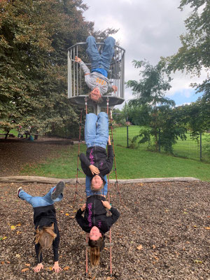Gerade rechtzeitig für den Zmittag. Danach konnten die schwindelfreien Kinder die Burg erkunden und bis ganz nach oben in den Turm steigen und genossen eine tolle Aussicht über das Umland. Nur der Munot liess sich auch von so weit oben leider nicht entdecken. Wer nicht hochsteigen wollte, konnte rund um den Zmittagsplatz spielen oder Hebefiguren ausprobieren; wir sind ja schliesslich ein Turnverein 😊.