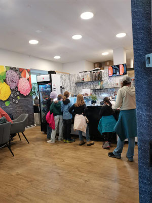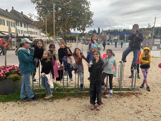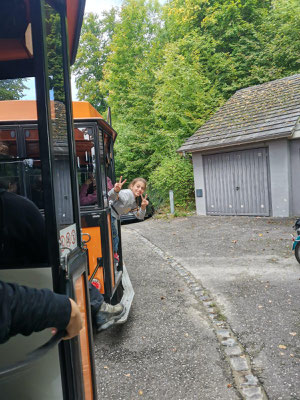 Nach diesem ersten Höhepunkt stärkten wir uns beim Mittagessen und hatten danach noch etwas Zeit zum Spielen. Oder für gewisse auch umgekehrt. Als alle zumindest ein paar Bissen gegessen hatten, ging es weiter Richtung Übernachtungsort. Also wieder Gepäck abholen, zurück durch die Altstadt, mit dem Thurbo nach Stein am Rhein und schliesslich zur nächsten Herausforderung: Wir 48 zusätzlichen Personen wollten ebenfalls in den kleinen Ortsbus. Doch mit etwas Quetschen, viel Teamgeist und der Flexibilität eines Turnvereins haben wir es irgendwie geschafft. Zum Glück konnten wir nach vier Stationen wieder aussteigen.